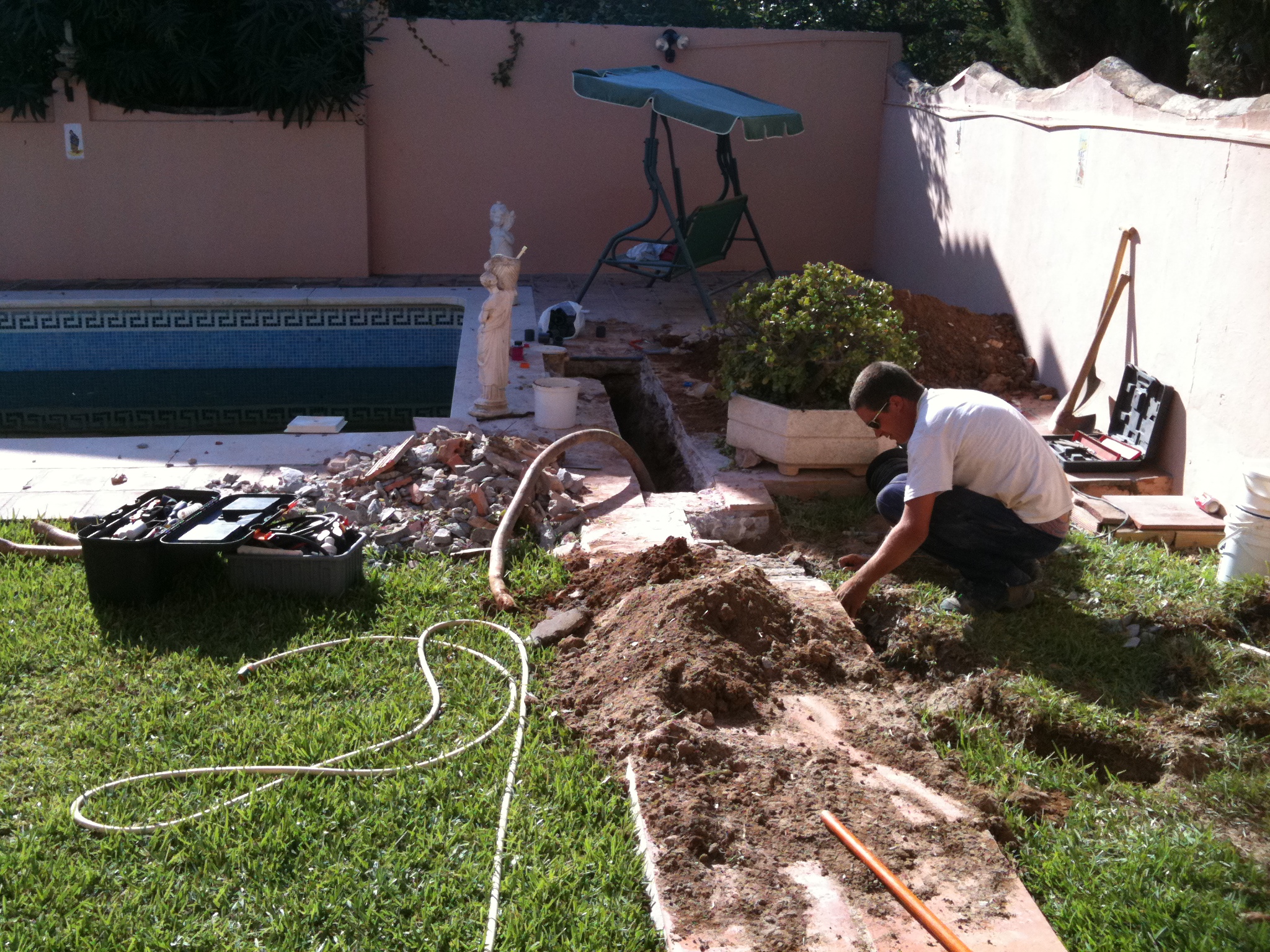return & base lines but with the skimmer line we highly recommend using ridgid pipe as over time, the chlorine tablets that are put into the skimmer will weaken the flexible pipe causing it to split & leak. In these pictures we are replacing the entire skimmer line from the 50mm flexible to 50mm rigid pipe.